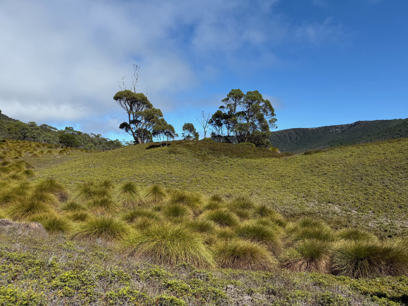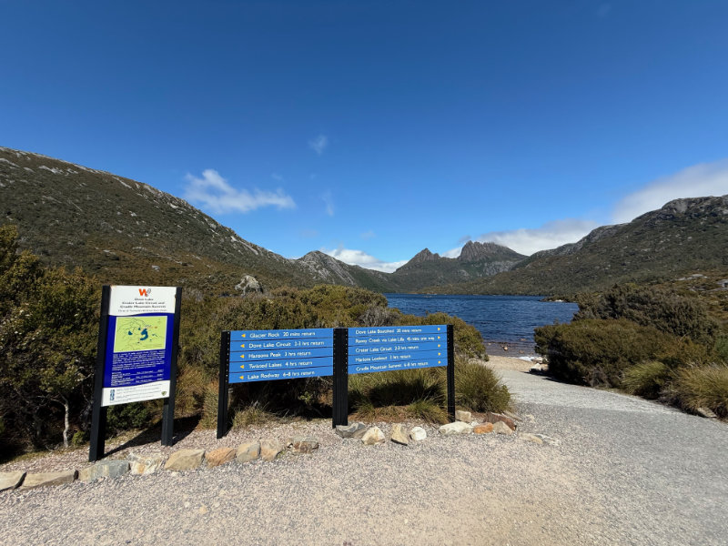 Wir fahren bis Ronny Creek. Von hier starten wir unsere Wanderung. Wir wandern den Crater Lake Circuit bis zum Dove Lake und zurück nach Ronny Creek.