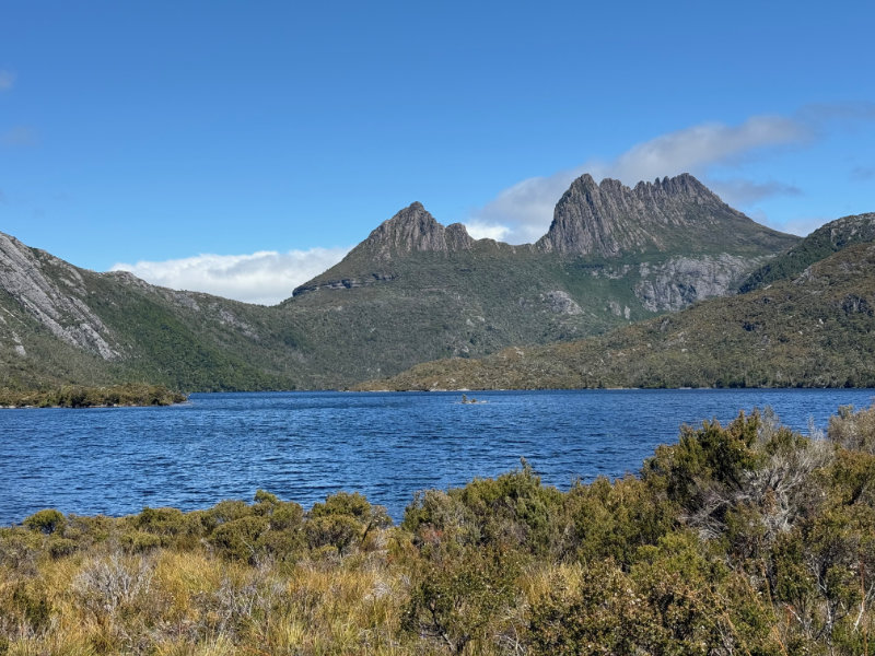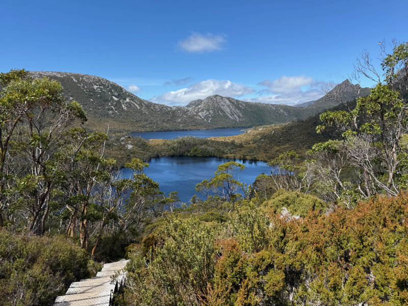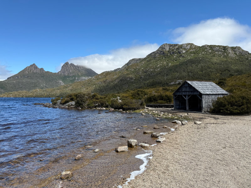 hat man eine wettergeschützte Aussicht auf den Dove Lake und den Cradle Mountain.