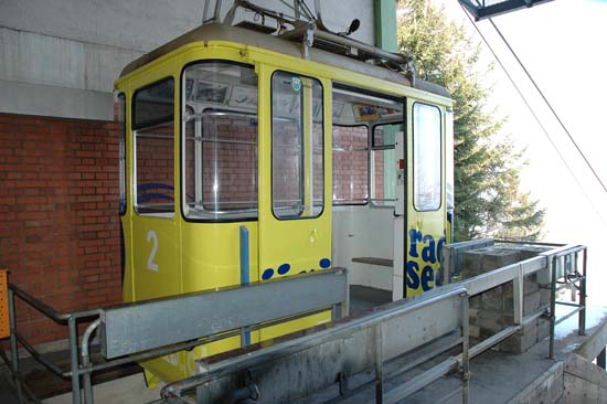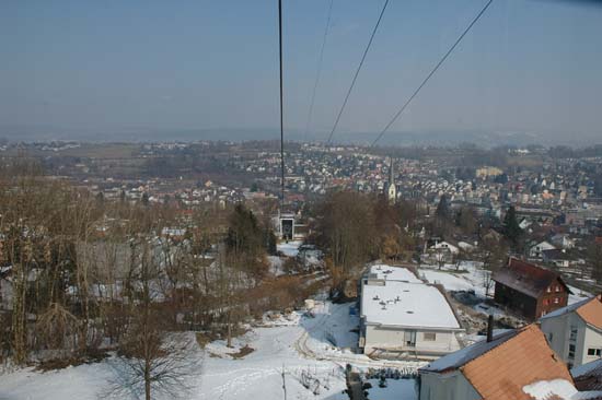 In Felsenegg fahren wir mit der Gondel hinunter nach Adliswil. |