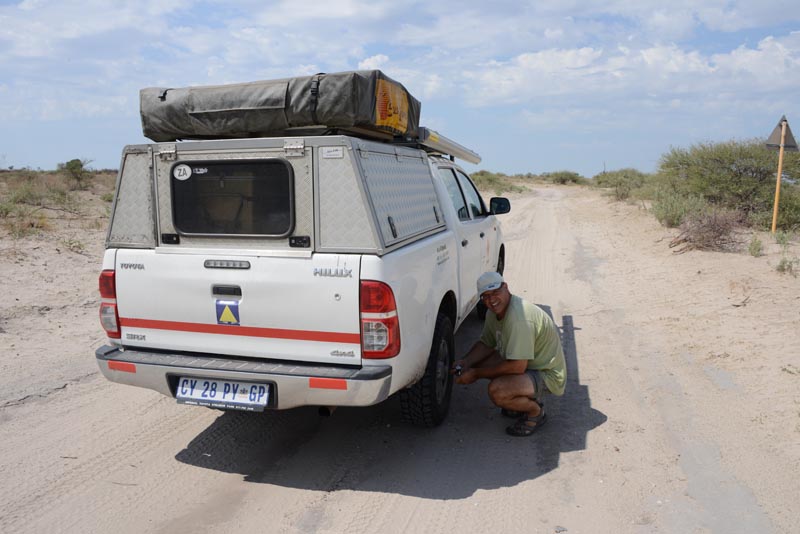 Da wir ab jetzt wieder sandige Pisten vor uns haben, reduzieren wir den Reifendruck.