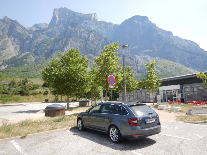 Über Turin und Salbertrand geht es in die Berge. Durch den Frejus Tunnel erreichen wir Frankreich. Auf der ersten Raststation in Frankreich machen wir Pause.